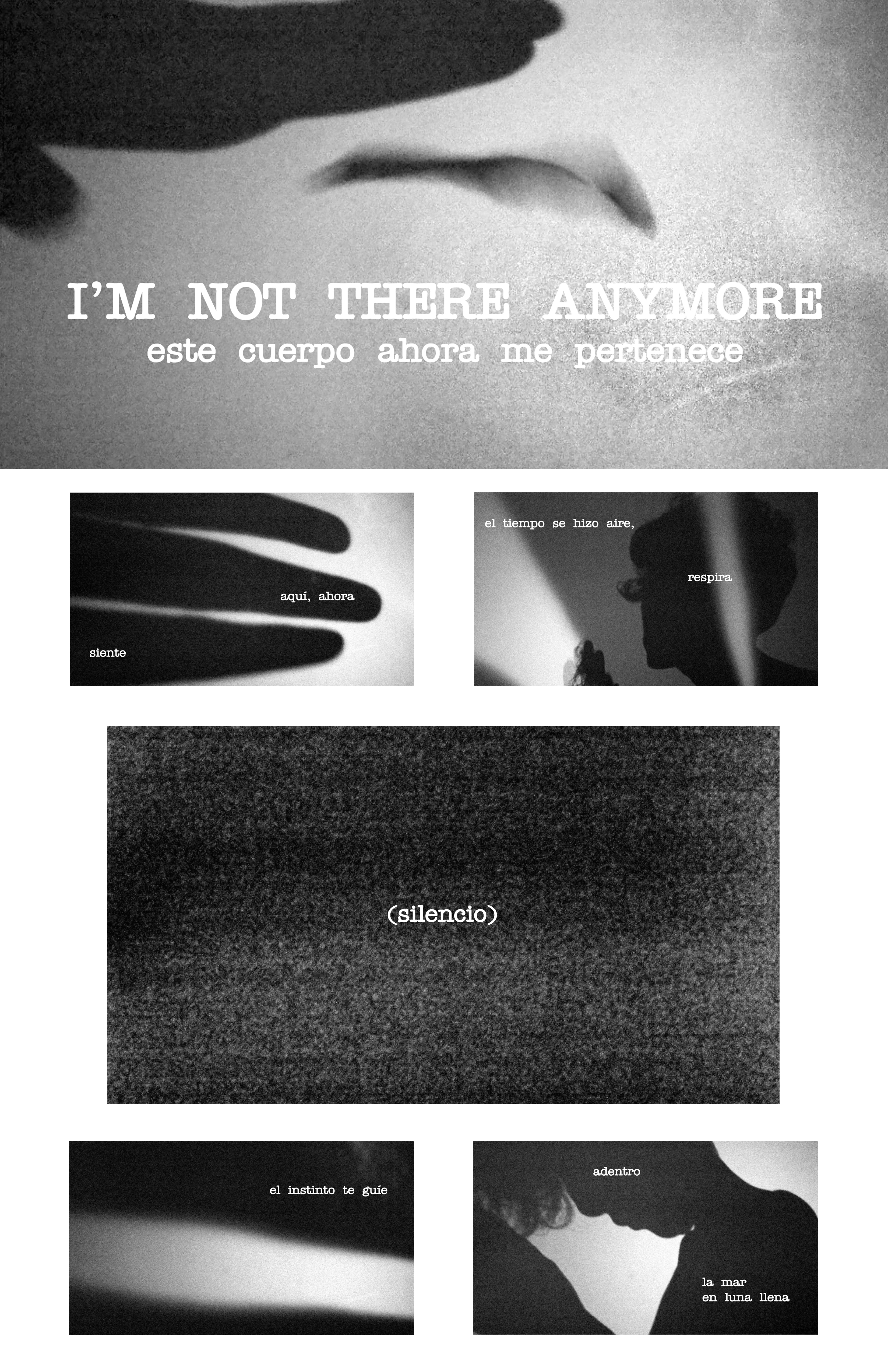 No recuerdo exactamente cuando comenzó, ahora es más fácil reconocerla como una metamorfosis interna que se hace presente en el ensueño, la voz que me guía para desprenderme de lo que ha muerto. Despertar y dejar que la nueva piel respire creando imaginarios para ser habitados. I’M NOT THERE ANYMORE – este cuerpo ahora me pertenece.
